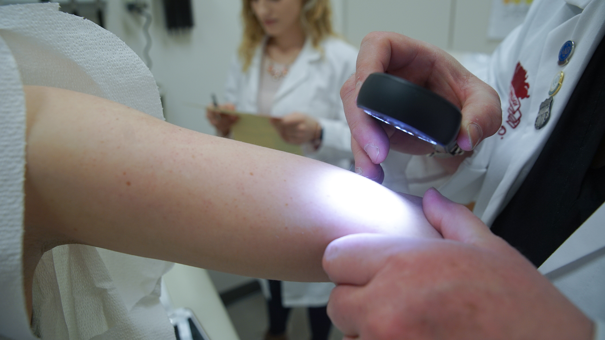 Dr. Daly performs a skin cancer screening at Molloy College