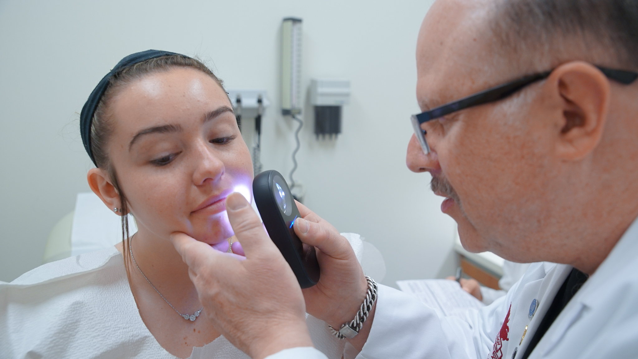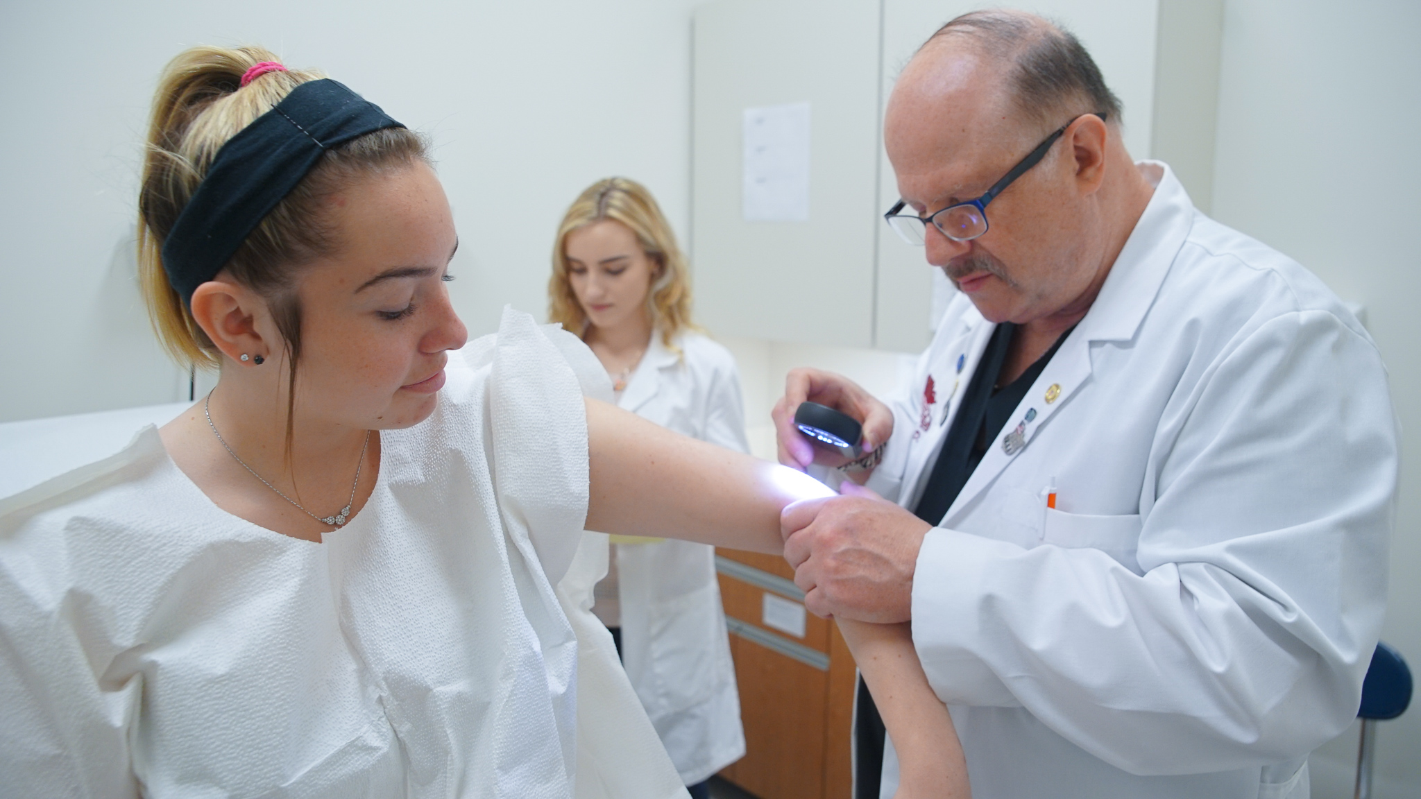 Dr. Daly performs a skin cancer screening at Molloy College